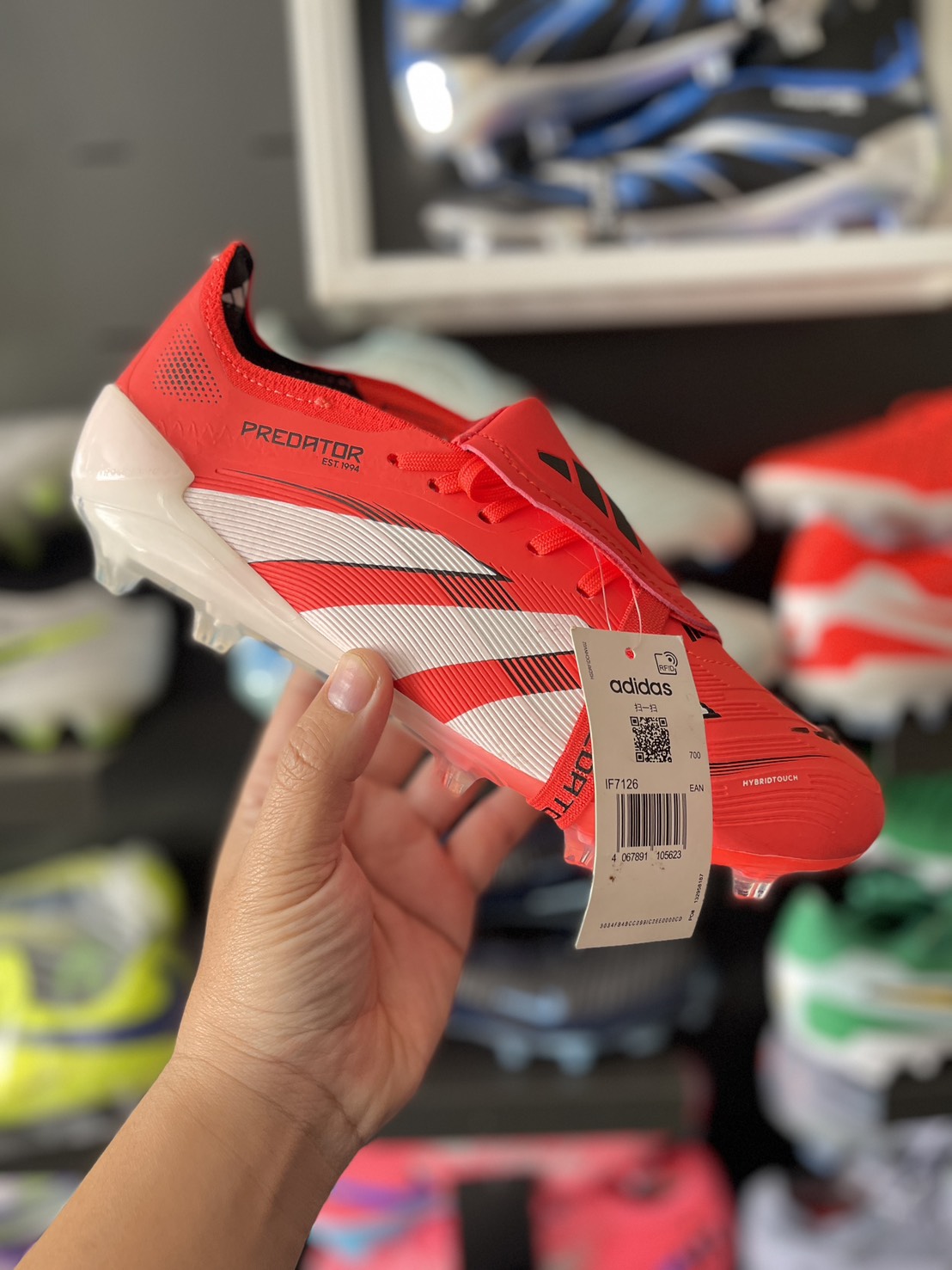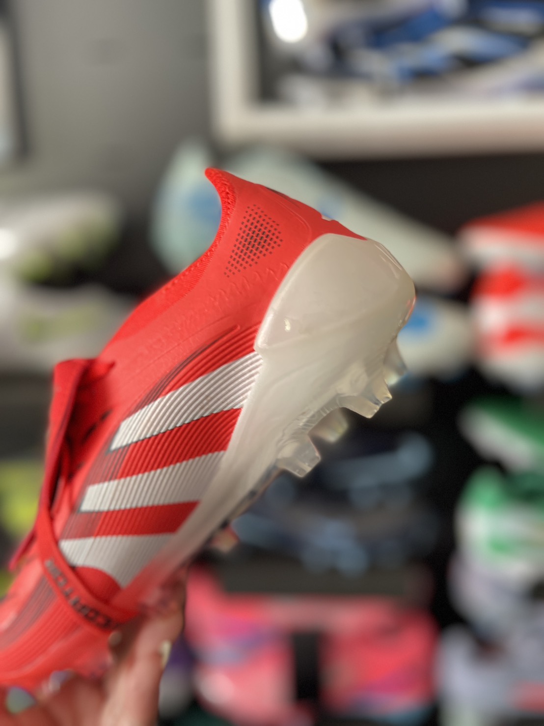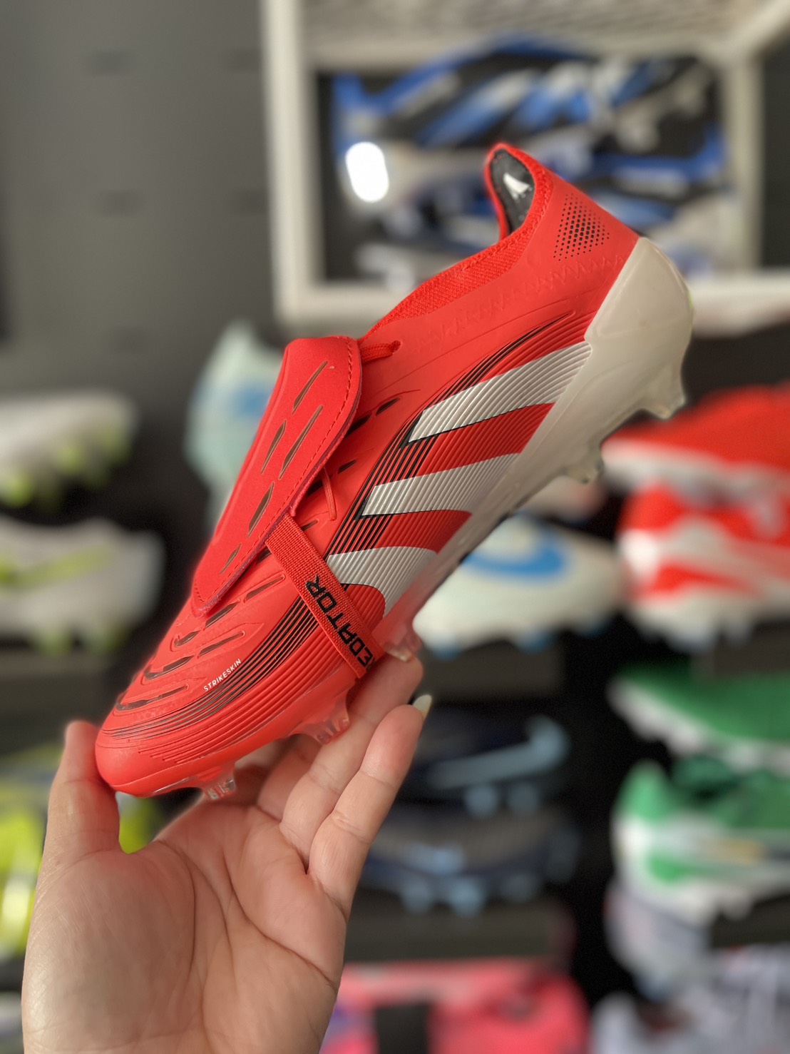 Adidas Predator 25 Elite Fold-Over Tongue คือรองเท้าฟุตบอล FG ระดับท็อปสำหรับพื้นสนามแน่น ออกแบบมาเพื่อประสิทธิภาพสูงสุดในสนาม มีให้เลือกทั้งสีเบจและสีดำ โดดเด่นด้วยดีไซน์เรียบหรู มอบทั้งสไตล์และการใช้งาน ด้วยราคาที่เข้าถึงได้ จึงเป็นตัวเลือกที่ยอดเยี่ยมสำหรับผู้ที่มองหารองเท้าฟุตบอลคุณภาพสูงในราคาที่เอื้อมถึง